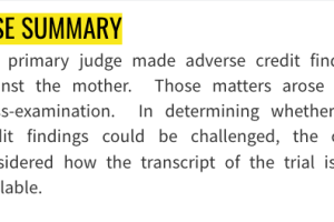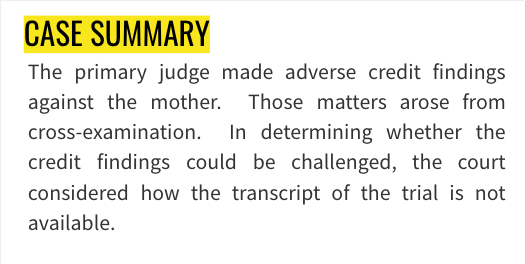 The primary judge made adverse credit findings against the mother. Those matters arose from cross-examination. In determining whether the credit findings could be challenged, the court considered how the transcript of the trial is not available.