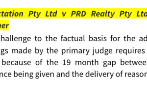 Expectation Pty Ltd v PRD Realty Pty Ltd and Another (2004) 140 FCR 17; [2004] FCAFC 189 - provides that the challenge to the factual basis for the adverse findings made by the primary judge requires more force because of the 19 month gap between the evidence being given and the delivery of reasons.