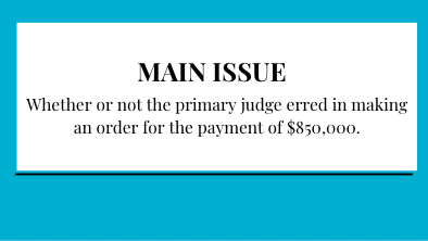 Whether or not the primary judge erred in making an order for the payment of $850,000.