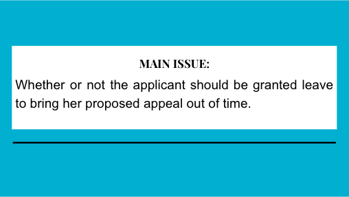 Whether or not the wife should be granted leave to bring her proposed appeal out of time.