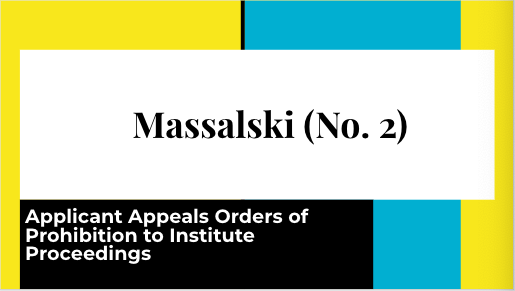 Applicant Appeals Orders of Prohibition to Institute Proceedings