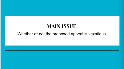 Whether or not the proposed appeal is vexatious.