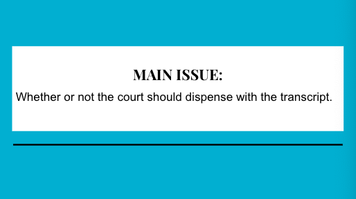 Whether or not the court should dispense with the transcript.