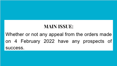 Whether or not any appeal from the orders made on 4 February 2022 have any prospects of success.