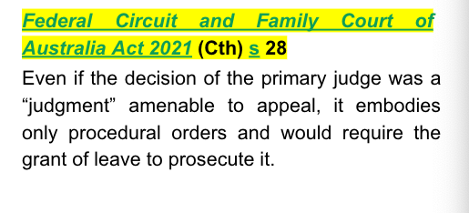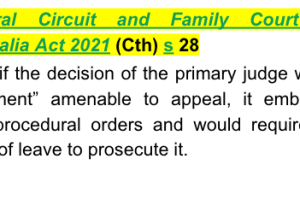The father sought to file a Notice of Appeal from the orders of the primary judge, but the appeal registrar rejected it. In two emails sent to the father, he was advised his proposed appeal was incompetent because: "The determination to appoint a particular expert to assess the child and the consequential orders giving effect to that determination is not a “judgment” from which any appeal competently lies." The father disagreed with the appeal registrar’s decision and filed an Application for Review on 4 October 2022, seeking the review of the appeal registrar’s refusal to accept his Notice of Appeal for filing. The application ought have been brought in the form of an Application in an Appeal (rr 13.40(1)(b) and 13.40(2) of the Federal Circuit and Family Court of Australia (Family Law) Rules 2021 (Cth) (“the Rules”)), but the procedural irregularity is overlooked.