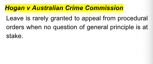 The primary judge merely made an interlocutory ruling on which one of three eligible psychiatrists would be appointed as the single expert. The ruling did not determine any legal right which one party could exert against the other. Neither party had the “right” to the appointment of a single expert, but once accepted a single expert should be appointed, neither had the “right” to the appointment of their preferred candidate nor the “right” to veto the other’s choice or the expert eventually selected. The decision was merely one about how the litigation would best be conducted to facilitate adjudication of the parties’ rights under Pt VII of the Act.