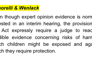 While the father forecast his generic disagreement with aspects of the report, he was unspecific about the particular ways in which he took issue with it. It was never elaborated which particular “assumptions”, “opinions”, and “conclusions” of the single expert were challenged. However, it must follow from the omission to mention any challenge to the single expert’s observations of the physical interaction between the children and the parties that they were uncontroversial. Nonetheless, the single expert report was in evidence and the primary judge was obliged to take its contents into account and provisionally assess its reliability, recognising that the single expert was yet to be tested by cross-examination.