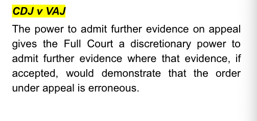 The appellant explained that he had not sought to critique the judgment of the primary judge, but had rather directed his attention to the respondent, ICL and family therapist, asserting that they had misled the primary judge. In accordance with this explanation, the appellant sought to adduce further evidence on the appeal, a significant part of which purported to be recordings of the children’s interactions with the ICL, family therapist and the respondent.