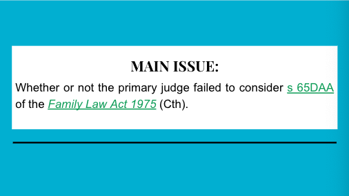 Whether or not the primary judge failed to consider s 65DAA of the Family Law Act 1975 (Cth).