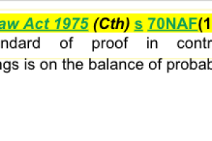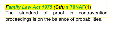Family Law Act 1975 (Cth) s 70NAF(1) - provides that the standard of proof in contravention proceedings is on the balance of probabilities.