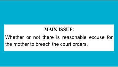 Whether or not there is reasonable excuse for the mother to breach the court orders.