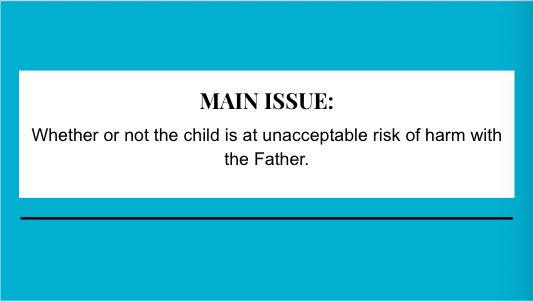 Whether or not the child is at unacceptable risk of harm with the Father.