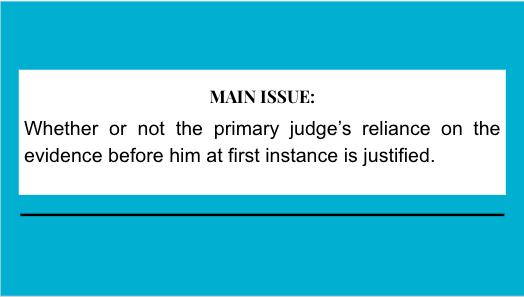 Whether or not the primary judge’s reliance on the evidence before him at first instance is justified.