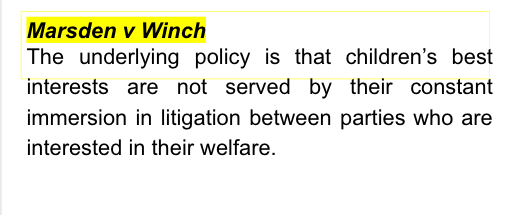 When the father appeared represented by counsel at the hearing, he well understood the dispute entailed the determination of whether or not his pending application for varied parenting orders should be dismissed pursuant to the principle established by Rice v Asplund, as is revealed by the content of the Case Outline his counsel furnished to the primary judge before the hearing began. The father said it was the children who instigated the discussions in which they told him they wish to spend more time with him. Secondly, he elaborated his concern about the children’s unduly harsh physical treatment by the mother’s partner. However, the evidence in respect of the first two issues added no extra value to the existing body of evidence.
