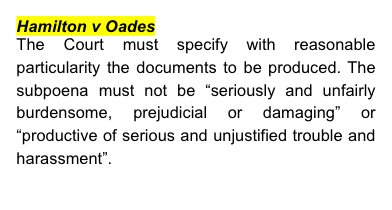 The Notice of Objection – Subpoena to Objection to Ms. B, Psychologist filed by the Father on 9 March 2022 is dismissed. The Application for Review filed by the Mother on 9 May 2022 is otherwise dismissed. The Application for Review filed by the Father on 10 May 2022 is dismissed and the decision of the Judicial Registrar on 3 May 2022 to refuse for filing Subpoena to Produce Documents to the following is upheld: (a) Mr. C, as responsible officer at D Pty Ltd (“the D Pty Ltd Subpoena”); (b) Mr. E as CEO at F Pty Ltd (“the F Pty Ltd Subpoena”); (c) Mr. G in personal capacity and as responsible office at Company H, Company J and his family office (“the Mr G Subpoena”); (d) Ms Farrelli (the respondent mother); and (e) Ms K. Leave is granted to the Father to file Subpoena to Produce Documents to the NSW Education Standards Authority.