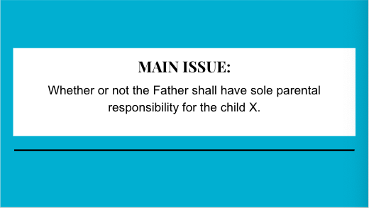 Whether or not the Father shall have sole parental responsibility for the child X.