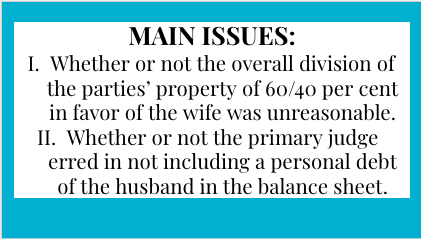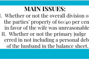 I. Whether or not the overall division of the parties’ property of 60/40 per cent in favour of the wife was unreasonable.
