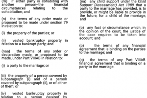 Family Law Act 1975 (Cth) s 75(2) - provides for the matters to be taken into consideration in relation to spousal maintenance.