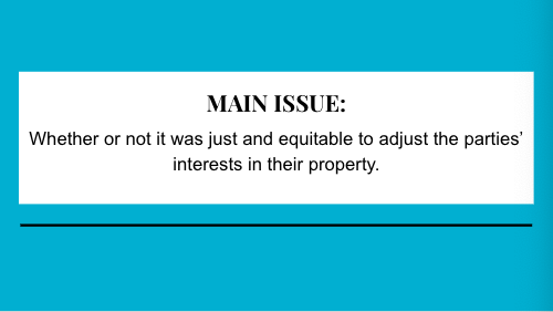 Whether or not it was just and equitable to adjust the parties’ interests in their property.