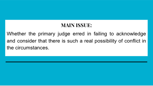 Whether the primary judge erred in failing to acknowledge and consider that there is such a real possibility of conflict in the circumstances.