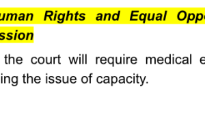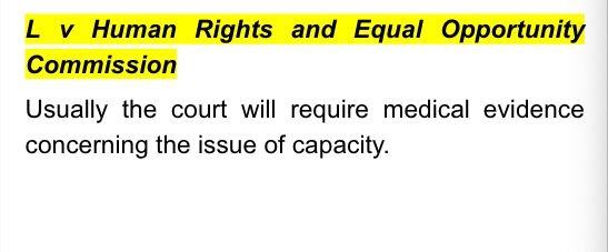 The mother had filed nothing. She submitted that she had documents that would show that despite various interventions about her with treating medical and therapeutic professionals, including staff from a local health district - all the written correspondence of her interactions supported her submission that no mental health diagnosis had been made or that her presentation during her interactions warranted any concerns. There was no evidence or submissions from either of the mother’s lawyers about whether they are having difficulties obtaining instructions from the mother. There was no evidence from the mother’s current treators going specifically to the issue of her capacity to conduct the proceedings and/or to instruct someone in the conduct of the proceedings.