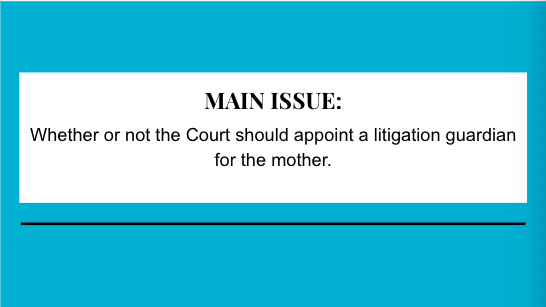 Whether or not the Court should appoint a litigation guardian for the mother.