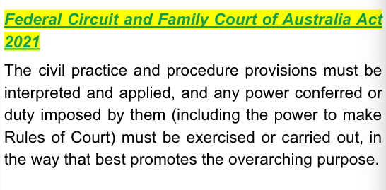 The dismissal of the ICL’s application, given the mother’s submissions about her willingness to instruct a solicitor and/or her capacity to conduct the proceedings herself (albeit this is not her preference) will support the efficient use of the court’s resources and provide for the just determination of the dispute as quickly, inexpensively and efficiently as possible.