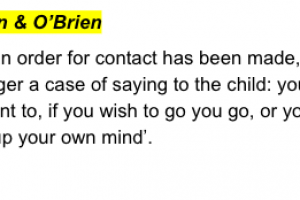 The father was obliged to recognise and admit immediately that his actions and those of the stepmother triggered and caused the distress that arose between Y and the mother. Had he done so, he ought to have been able to communicate with and encourage Y to spend time with the mother and with a likely effect of Y not refusing to spend time with the mother.