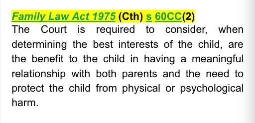 In relation to the primary judge’s failure to provide for the child to spend holiday time with the mother, the primary judge gave careful consideration to such provision at [460], but ultimately accepted the ICL’s submission that: ...the risk to the child that would be raised if she were to make further disclosures and/or experience difficulties in the father’s care, are heightened if there were to be lengthy periods of overnight time with the mother, such as in the school holiday period as proposed by the father.