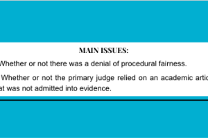 The article identified in Grounds 1(a) and 2 was referred to by the primary judge in his reasons for judgment. All parties agree that neither the article nor any intention by the primary judge to rely on it was identified to any party prior to the delivery of his Honour’s reasons for judgment. Assuming that his Honour relied upon the article, the parties agreed that a breach of procedural fairness was made out. However, not every breach of the rules of procedural fairness will lead to a new trial. The breach of procedural fairness needs to be material.