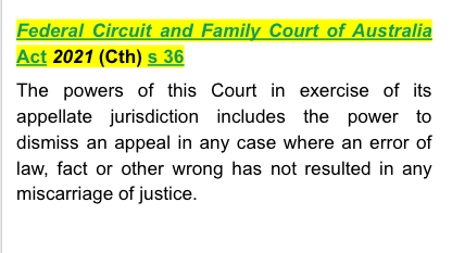 The article was not part of the body of evidence before the primary judge. Having regard to the orders made by the primary judge and our analysis of his reasons for those orders, his Honour’s reliance upon the article when it was not in evidence before him did not lead to a miscarriage of justice such that it is appropriate to set those orders aside and direct a new trial of the appellant’s application. The appellant did not argue that the orders were not in the child’s best interests given the primary judge’s unchallenged consideration of the matters raised by ss 61DA(1) and 60CC of the Act. The subject error has not resulted in, or provided the foundation for a conclusion that, a substantial miscarriage of justice had occurred.