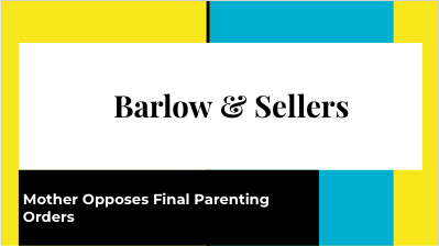 Ms. Barlow (“the mother”) and Mr. Sellers (“the father”) have two children who were born in 2010 and 2012. The orders provided for both children to live with the father who was to have sole parental responsibility for them. The children were to have limited time via Skype with the mother and no face-to-face time. The mother was restrained from attending at or approaching nearer than 100 metres of the children’s school (unless invited to a parent/teacher interview by the principal or the class teacher) and restrained from attending nearer than 100 metres of the father’s church from 15 minutes before any advertised service until 15 minutes after the conclusion.