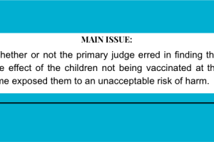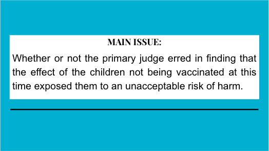 Whether or not the primary judge erred in finding that the effect of the children not being vaccinated at this time exposed them to an unacceptable risk of harm.
