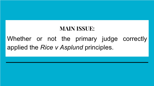 Whether or not the primary judge correctly applied the Rice v Asplund principles.