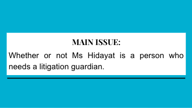 Whether or not Ms. Hidayat is a person who needs a litigation guardian.