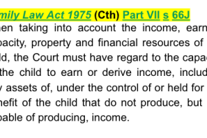 The wife stated that Judge Coker ordered the husband to pay $30,000 in child support, the judgment, and Orders in fact reflect a cash adjustment of $30,000 as part of the property settlement. In any event, that decision was set aside by the Full Court and the subsequent Orders of Judge Coates require the wife to pay $14,000 to the husband.