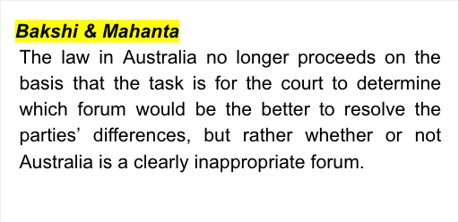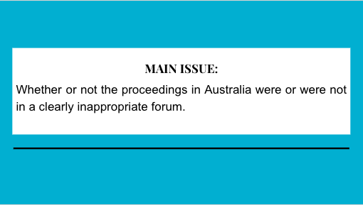 Whether or not the proceedings in Australia were or were not in a clearly inappropriate forum.