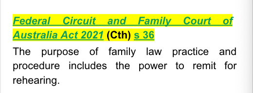 The appellant contends that the matter should be remitted to a judge other than the primary judge, principally because her Honour has previously determined how the parties’ property should be divided under s 79, and it is said therefore would be required to recuse herself from dealing further with the matter.