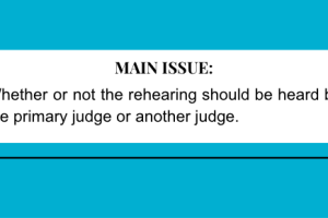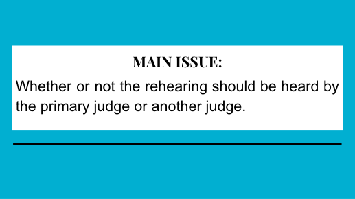 Whether or not the rehearing should be heard by the primary judge or another judge.