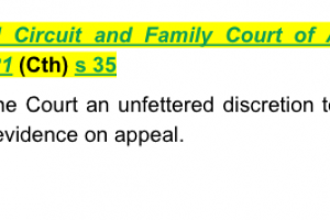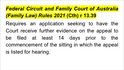 Save that paragraphs, 5–8 (both inclusive) of the wife’s affidavit filed 20 June 2022, and the material exhibited in those paragraphs, is admitted into evidence, otherwise, the wife’s Amended Application in an Appeal filed 5 July 2022 is dismissed. Appeal NAA 105 of 2021 is dismissed. The appellant is to pay the respondent’s costs in the sum of $23,000 within 28 days.