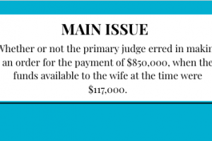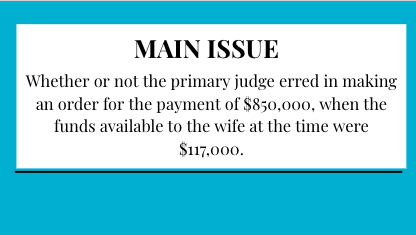 Whether or not the primary judge erred in making an order for the payment of $850,000 when the funds available to the wife at the time were $117,000.