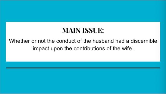 Whether or not the conduct of the husband had a discernible impact upon the contributions of the wife.