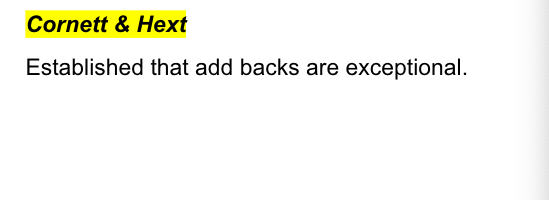 Cornett & Hext (2021) FLC 94-067 - established that add backs are exceptional.