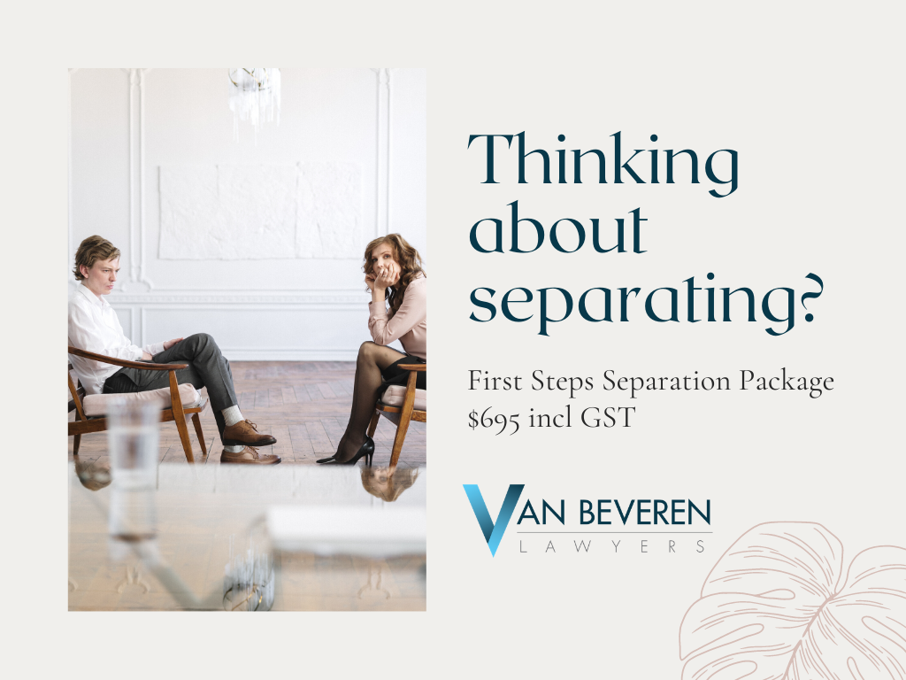 Separation can be complex. It is extremely important to obtain specialised legal advice relevant to your situation so that you can make the best informed decision about: